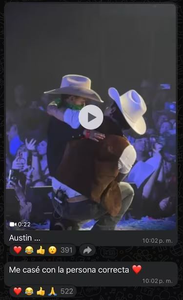 Esta semana, la hija de Pepe Aguilar compartió un video en su canal de WhatsApp en el que se ve a Nodal cantar con un niño durante su concierto en Austin, Texas.